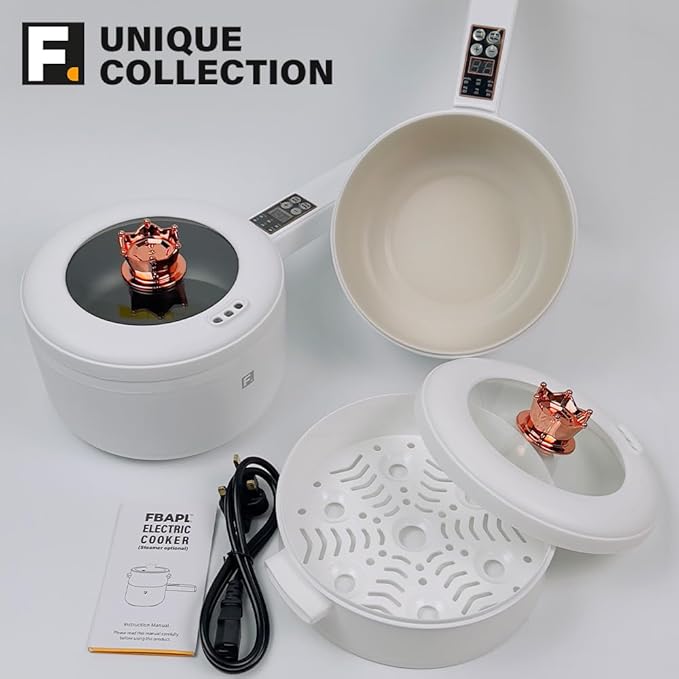 2L Hot Pot Electric Cooker Multi Cooker Electric Pot, Rice Cooker Small, Steamer Cooker, Electric Skillet, Electric Frying Pan Electric Hot Pot, Portable Nonstick Pan (Black Liner + Steamer)
